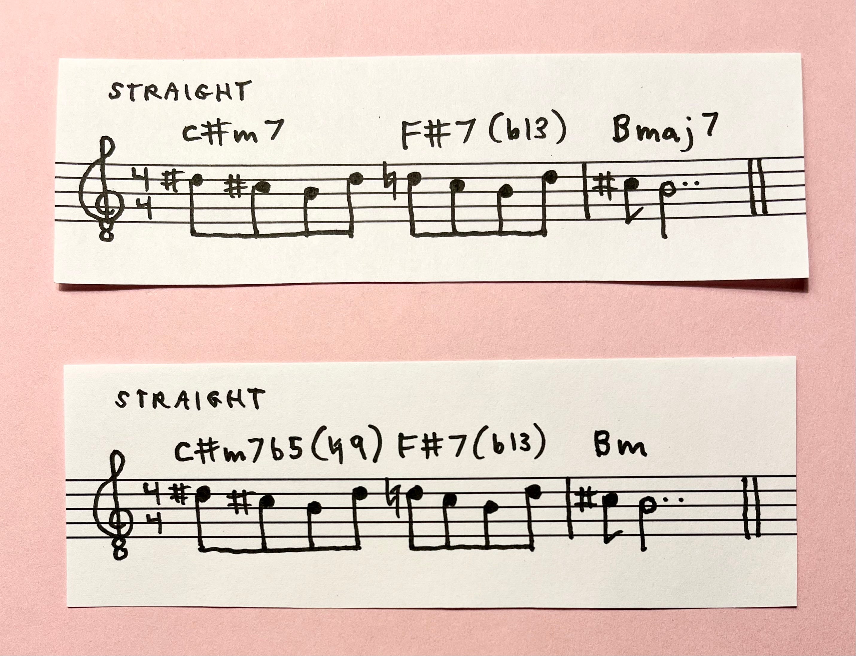 *Generally I notate instrumental music, but only write down the lyrics of songs with singing. (For the latter, quick audio recordings while writing help me remember.) I think it’s because my melodies with lyrics tend to be more rhythmically nuanced, would be a pain to notate, while my instrumental melodies usually have more of a wooden character. Parts that I write over the top of both kinds of song, while tracking, are almost never notated. The recording itself—and I don’t keep stems either—is the document.